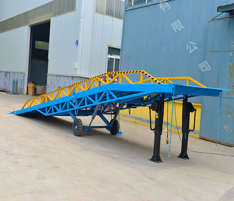 可調(diào)節(jié)長(zhǎng)度的索鏈能方便地鉤住貨車,使登車橋與貨車始終緊密貼合,傳統(tǒng)的裝卸貨品更多的是依托更多的人力來(lái)提高工作效率,而如今移動(dòng)式登車橋呈現(xiàn)提高了工作效率,并且大大減少了人力資源的投入,從必定的程度上大大降低了工人的利用率,所以為企業(yè)節(jié)省了更多的資本投入,提高了經(jīng)濟(jì)效益。